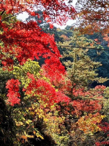 11月下旬の小松寺です。池の前の赤やオレンジ、そして黄色に紅葉したモミジが陽を受けて輝いて綺麗でした。