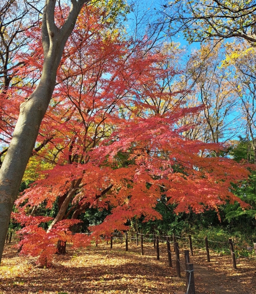 人気のない散歩道で見事な紅葉に出逢いました