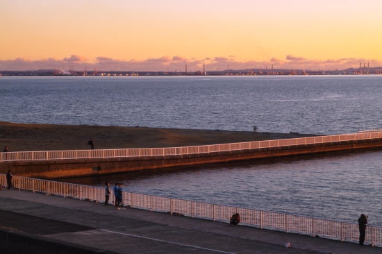 とてもきれいな夕日でした。が、寒い...sunset on makuhari bridge at 16:36 Jan,3 2026