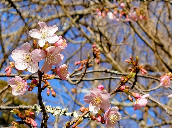 1月上旬のをくずれ水仙郷です。水仙を見に来ましたが、もう頼朝桜(河津桜)が咲いていました。