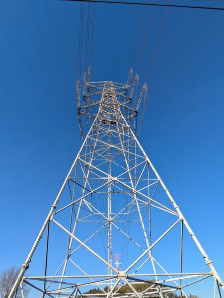 青空に鉄塔がそびえ立ってます。迫力ありますね。