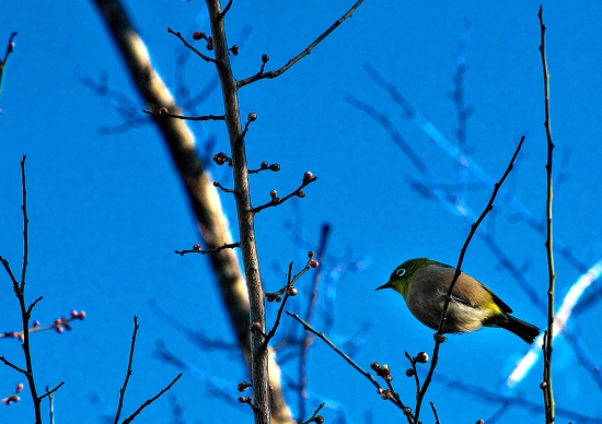 メジロが蜜を求めて梅の木に来る季節になりました。