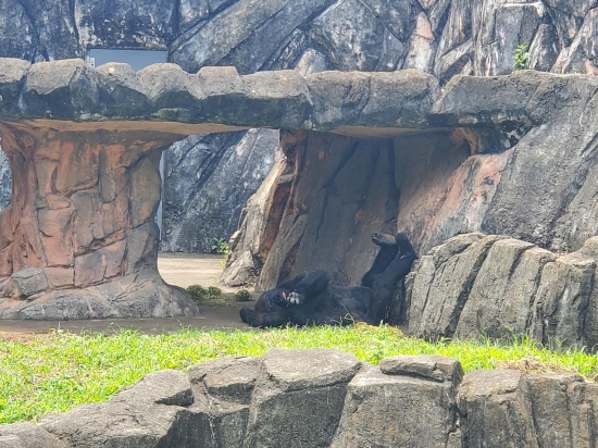 千葉市動物公園で出会った「食後の私」😂 千葉県内でゴリラに会える貴重なスポット! 1回目に見に行った時は美味しそうにエサを食べていたのに、最後にもう一度会いに行ったら…この姿(笑) あれ?これ食後の私じゃない?もしかして中に人間入ってる…? あまりのリラックスぶりに、親近感がわきすぎて最高の思い出になりました!