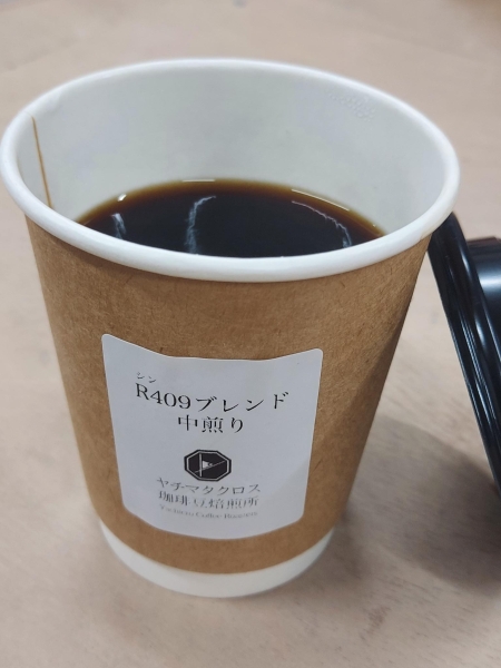 八街市にあるヤチマタクロスコーヒー。新商品のコーヒー「新R409ブレンド中煎り」。コーヒー豆の配合が代わりリニューアルしたそうです。珈琲好きの方もあまり飲まれない方も万人受けするように味が調整されているとのこと。味はもちろんですが、香りも素晴らしく、ホッと癒される一杯です。