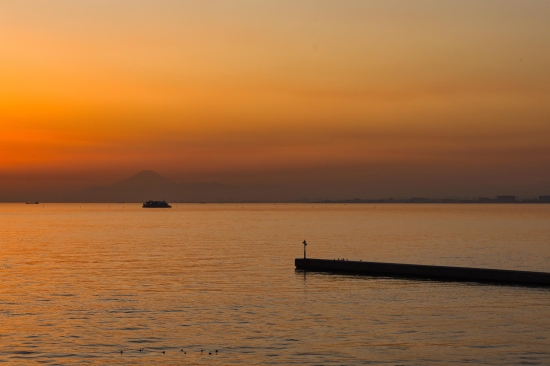 霞んでいましたが、とってもきれい。makuhari bay at 16:58 Jan,17 2026