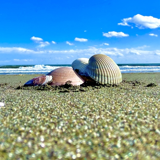 波打ち際で見つけた貝殻と