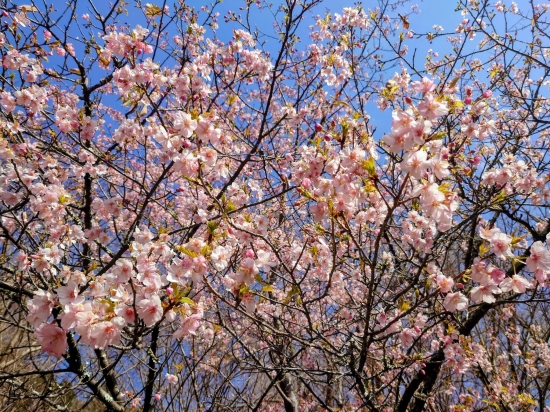 1月下旬の佐久間ダム親水公園です。水仙を見に来ましたが、頼朝桜(河津桜)が見頃で、青空に映えて綺麗でした