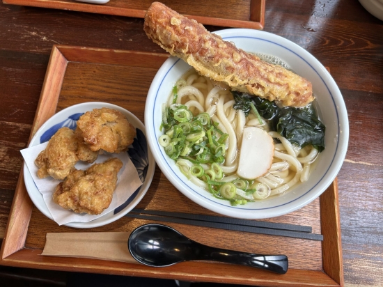 ちくわ天とうどんは、美味しいです!左の唐揚げは、「かしわ天」です。こちらも美味しい!是非ご賞味あれ!