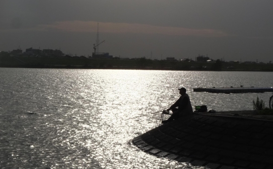 午後遅くの江戸川の釣り人に詩情を感じました。