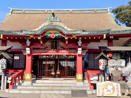 1月下旬の人見神社です。千葉県で今年の干支の午を検索したら、人見神社が検索されました。馬にゆかりのある神社のようです。朱塗りの本殿が青空に映えて綺麗でした。