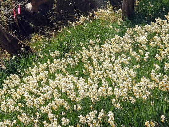1月下旬のとみやま水仙遊歩道です。細い急な遊歩道を上ると水仙が沢山咲いていました。日当たりの良い斜面に咲いた淡い黄色い花が綺麗でした。