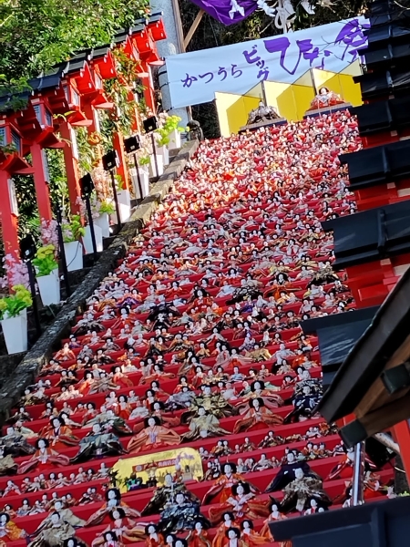 30分位待ちましたが、神社の階段に飾ってあるお雛様は爽快です。