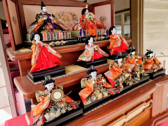 2月下旬の月崎駅です。駅舎の㊥だけでなく、ホーム側にも雛飾りが置いてありました。