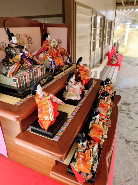 2月下旬の月崎駅です。駅舎の㊥だけでなく、ホームにも雛飾りが置いてありました