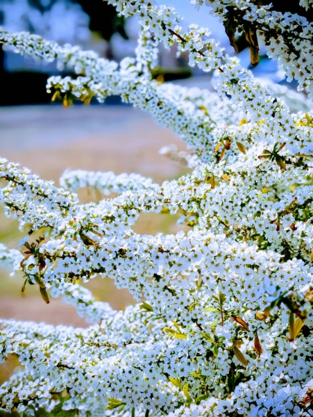 流れるような白い小花