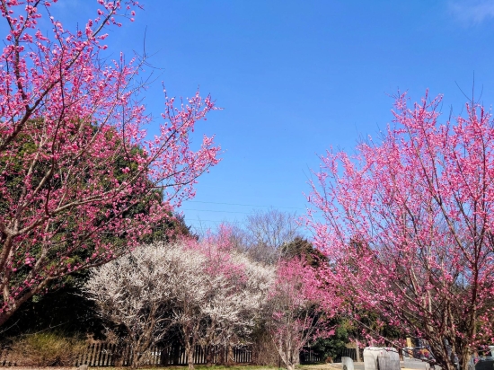 3月上旬の平和公園です。桜が有名な平和公園ですが、梅も沢山咲いていました。紅梅と白梅が雲ひとつない青空に映えて綺麗でした。