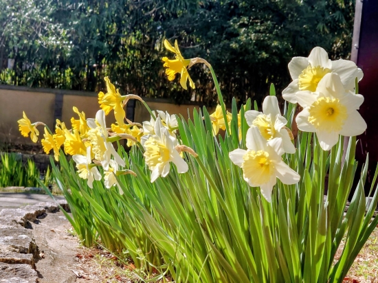 3月中旬の千葉公園です。梅と桜を見に来ましたが、まだ水仙が咲いていました!午後の日射しを受けて白や黄色に輝く花が綺麗でした。